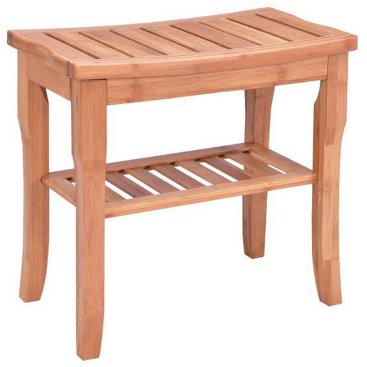 Waterproof Bamboo Wooden Shower Bench Seat With Storage Shelf