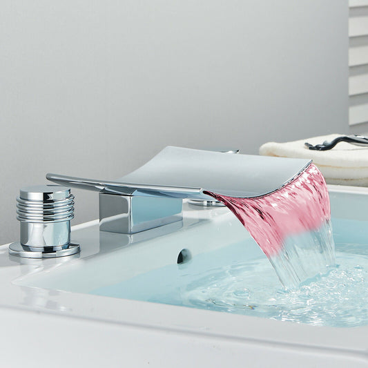 LED Widespread Waterfall Bathroom Sink Faucet 8"