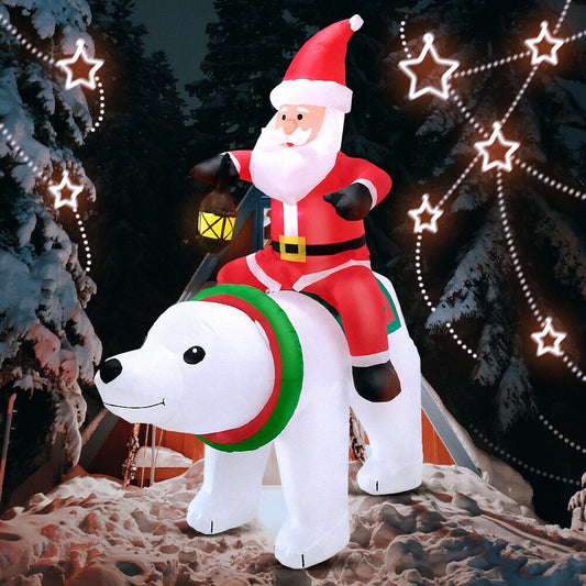 Giant Inflatable Outdoor Christmas Blow Up Santa With Polar Bear 7 Ft