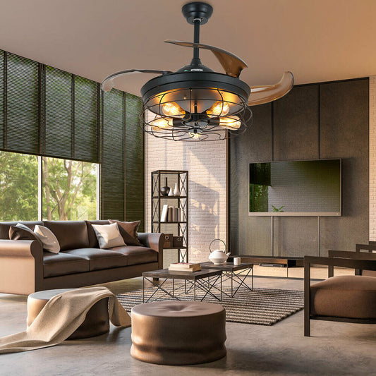 Modern Unique Reractable Ceiling Fan With Light 42 in