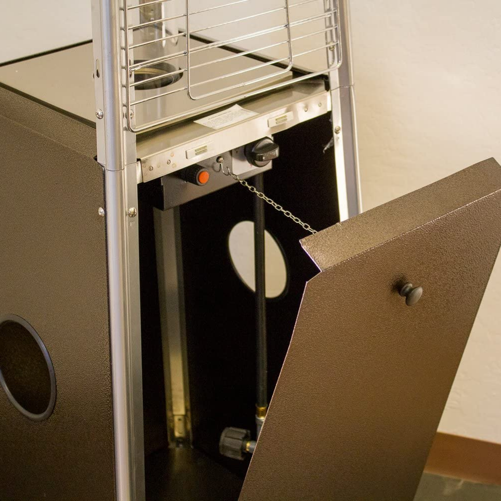 Better yet, the outside heater comes with its own propane tank enclosure to make everything look more neat and organized. Power up the outdoor gas heater to provide comforting heat to you and your loved ones when outdoors.